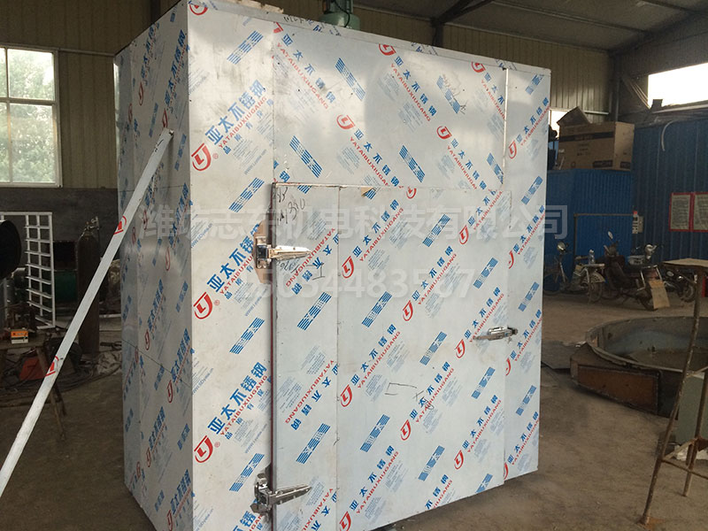 食品(牛肉干、豬肉干等)烘干設備采用耐高溫循環風機,通過電熱管或蒸汽換熱器加熱的強制熱風在箱內進行循環,增強了熱量的傳遞,提高了水分蒸發速率,縮短了干燥時間。整個箱體采用全封閉結構,熱空氣在箱內循環,合理排出濕熱空氣和補進新鮮空氣。